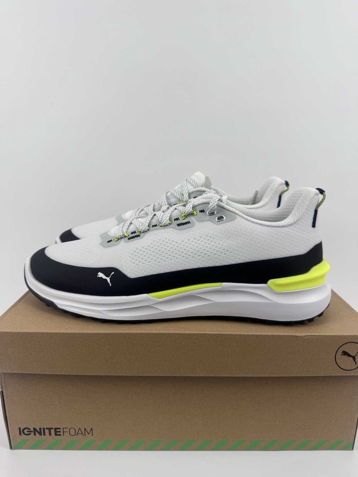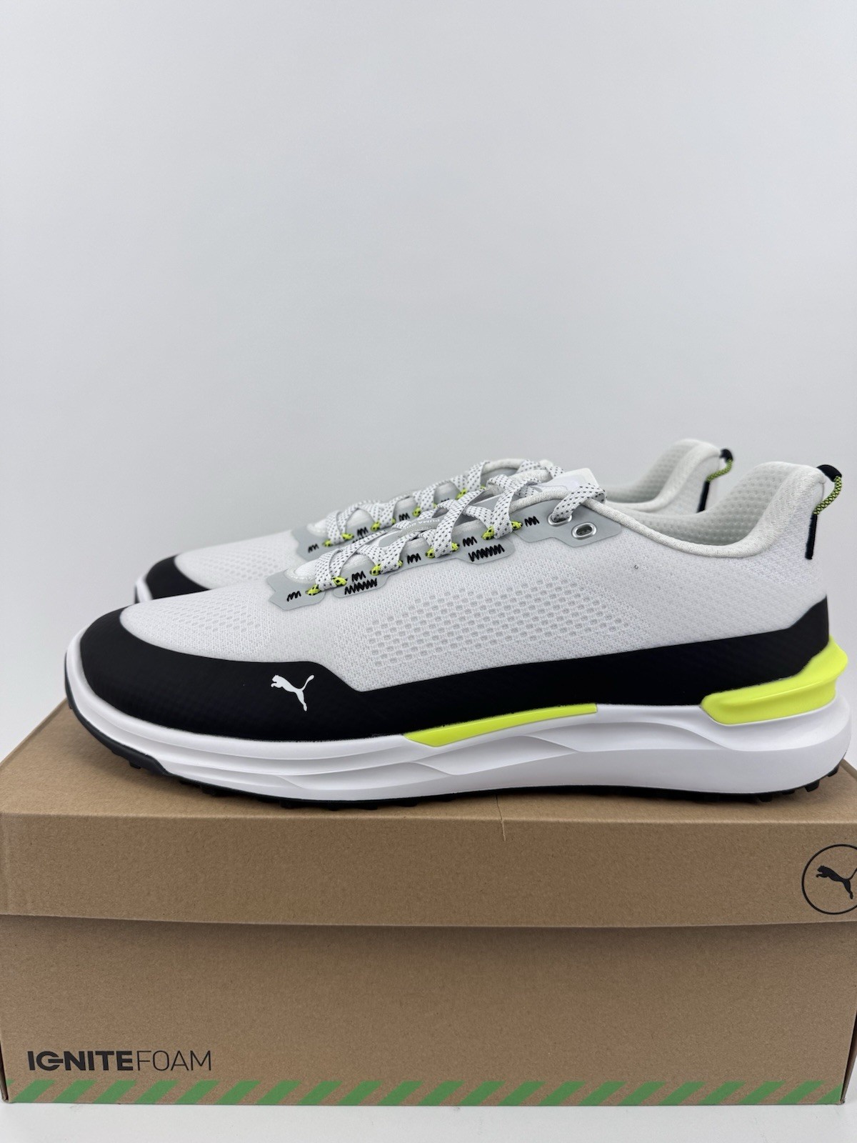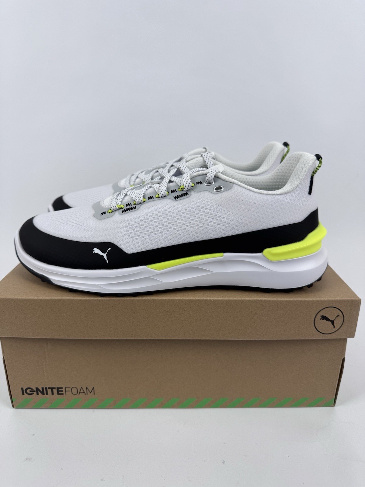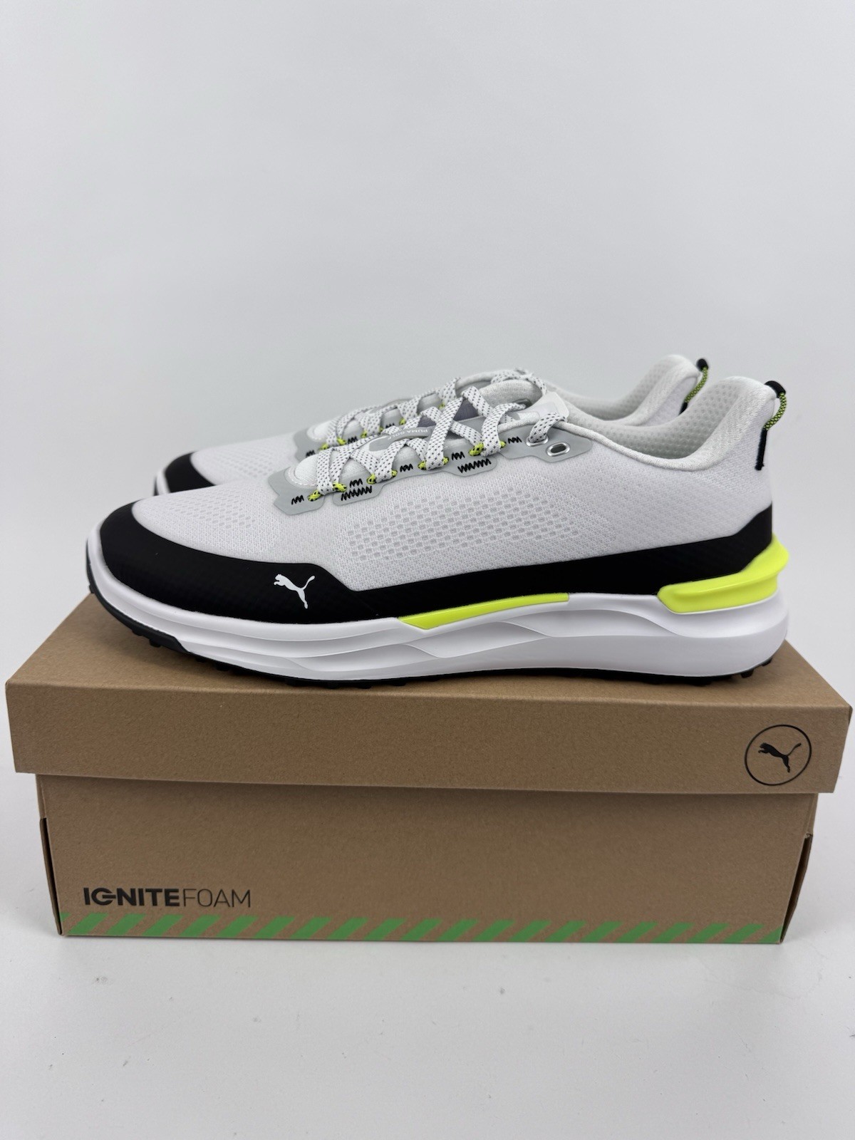 Puma IGNITE Elevate X Golf Shoes Mens Size 10.5 White Black Safety Yellow/32025