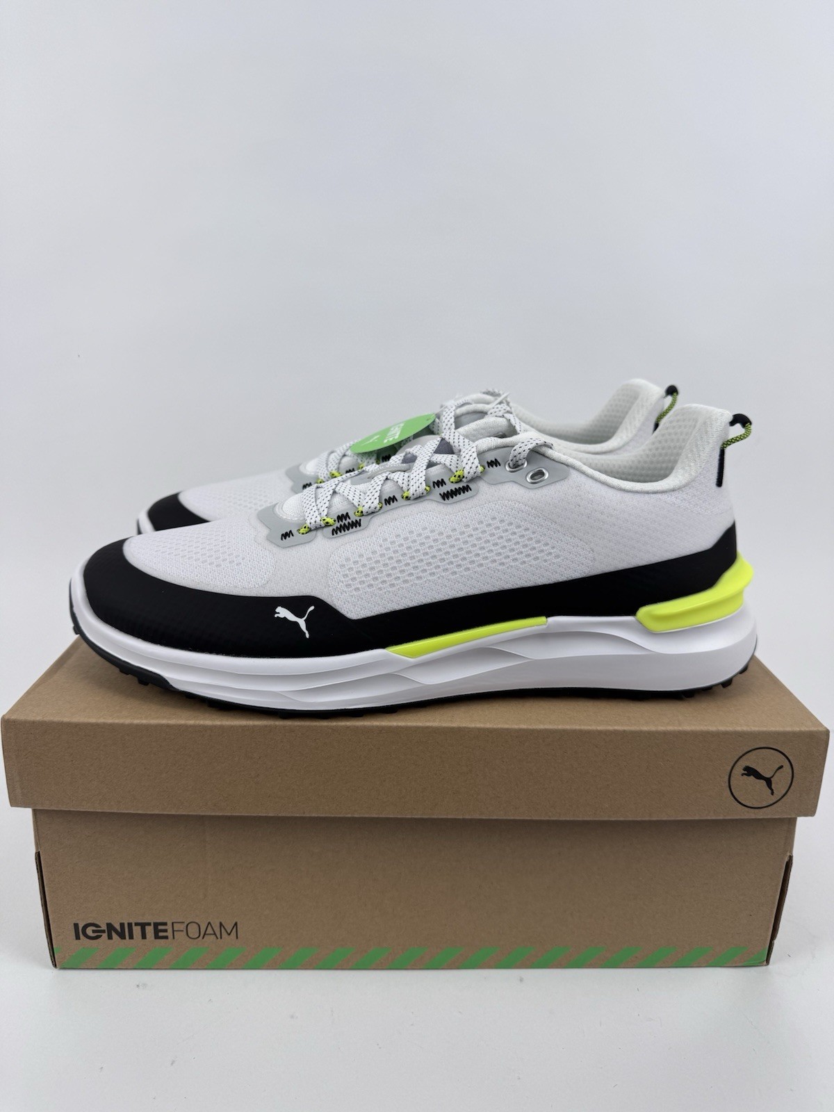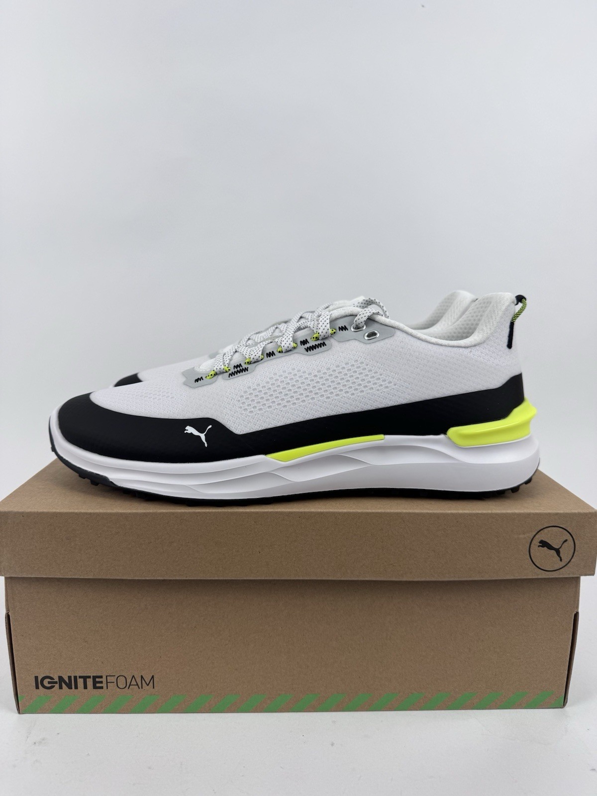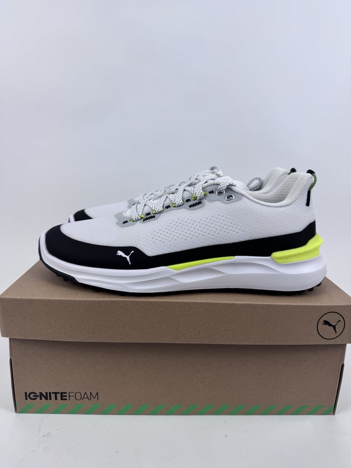 Puma IGNITE Elevate X Golf Shoes Mens Size 9.5 White Black Safety Yellow/31847