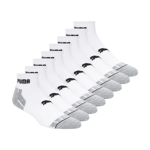 PUMA Men's 8 Pack Athletic Cushioned Quarter Crew Socks, White/Black, 9-13 UK (Pack of 8)