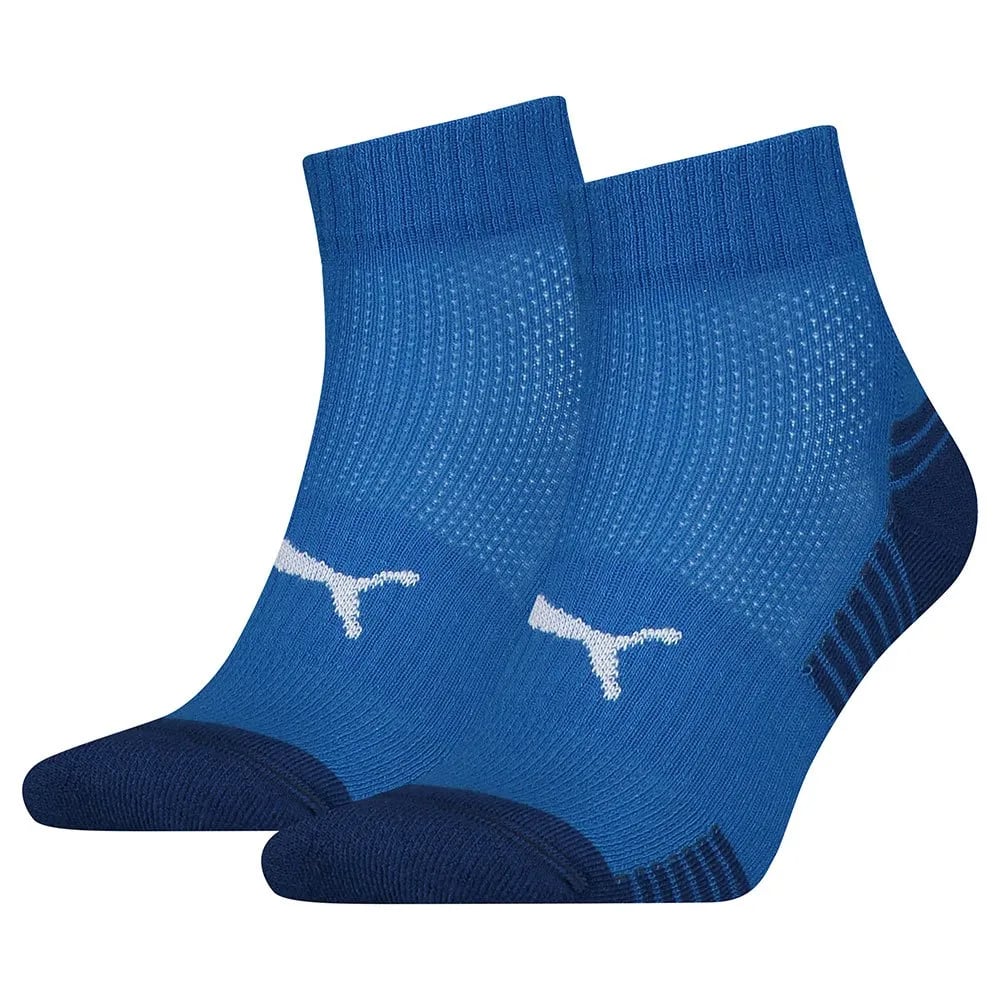 Puma Unisex Heritage Quarter Socks 2 Pack, Blue/Black. 2.5 - 5 UK