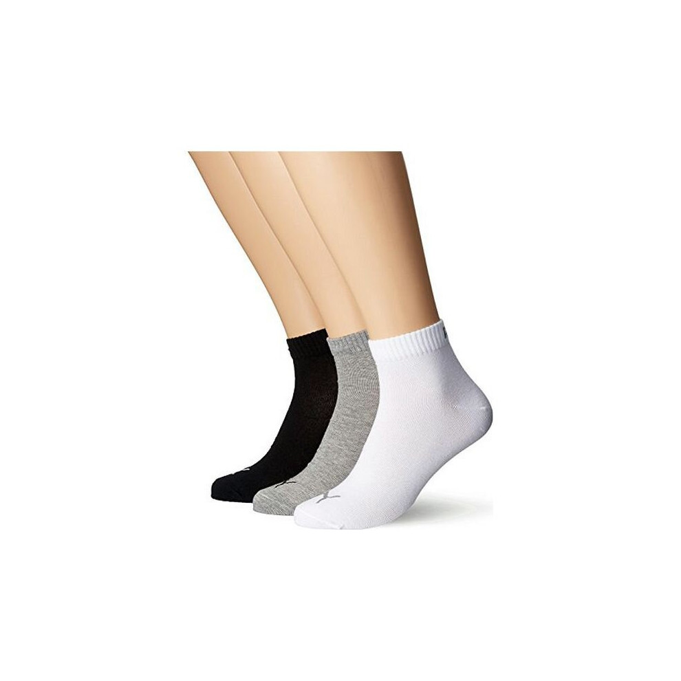 (6 UK-8 UK, Black/White/Grey) Puma Unisex Adult Quarter Ankle Socks (Pack of 3)