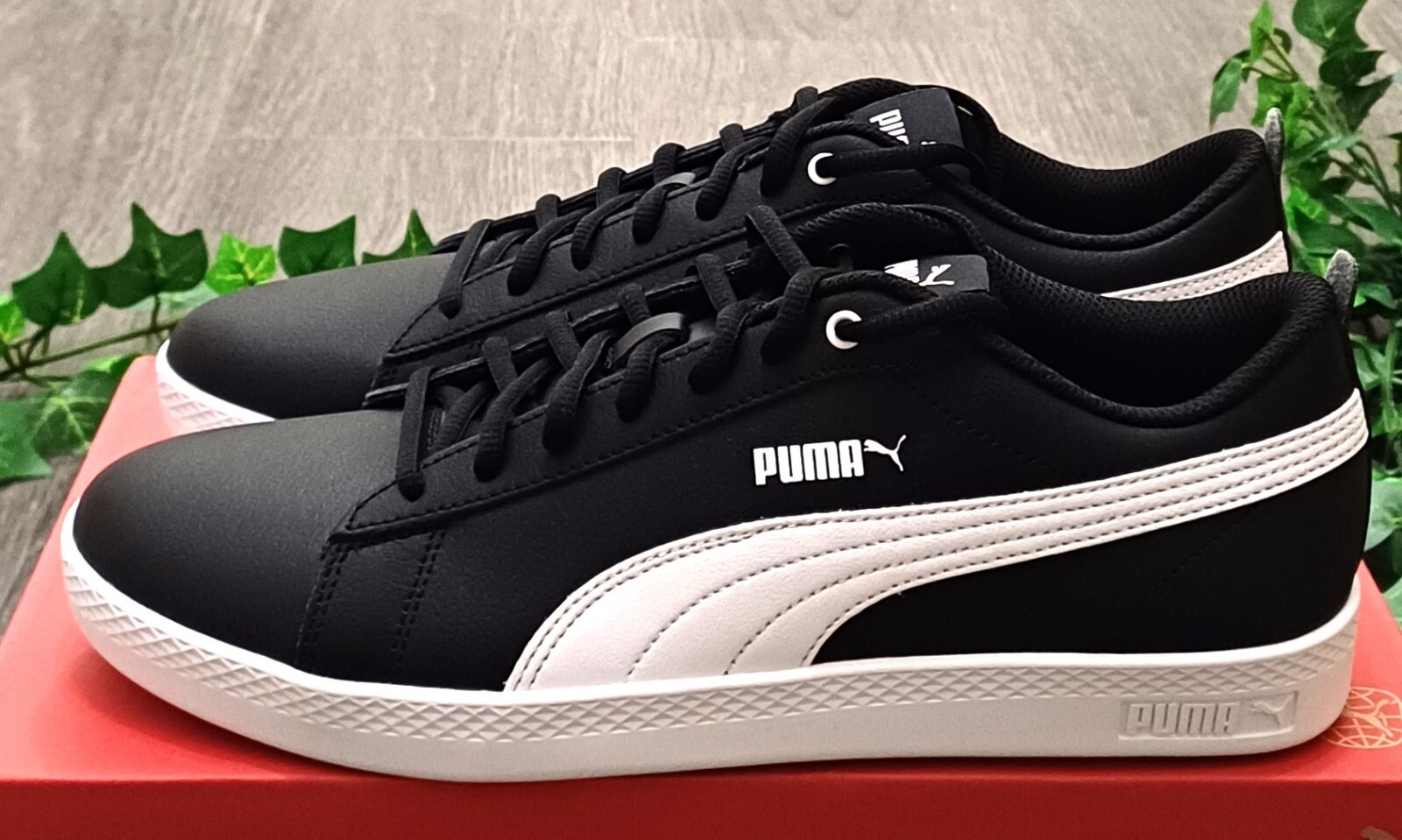 Puma Smash V2 Leather Trainers/Running Shoe-Black/White-New Authentic -UK Size 8