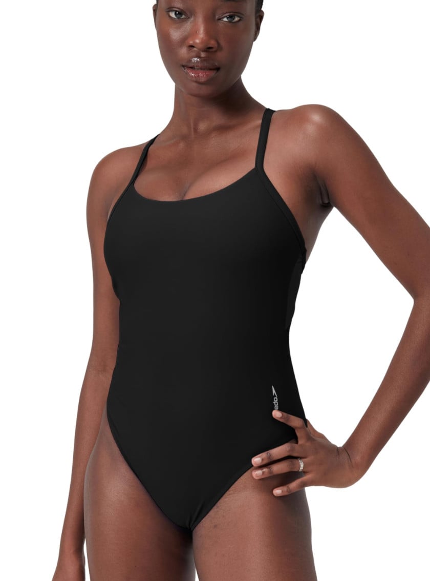 PUMA Women's Puma Women's V-neck Crossback One piece swimsuit, Black, XS UK