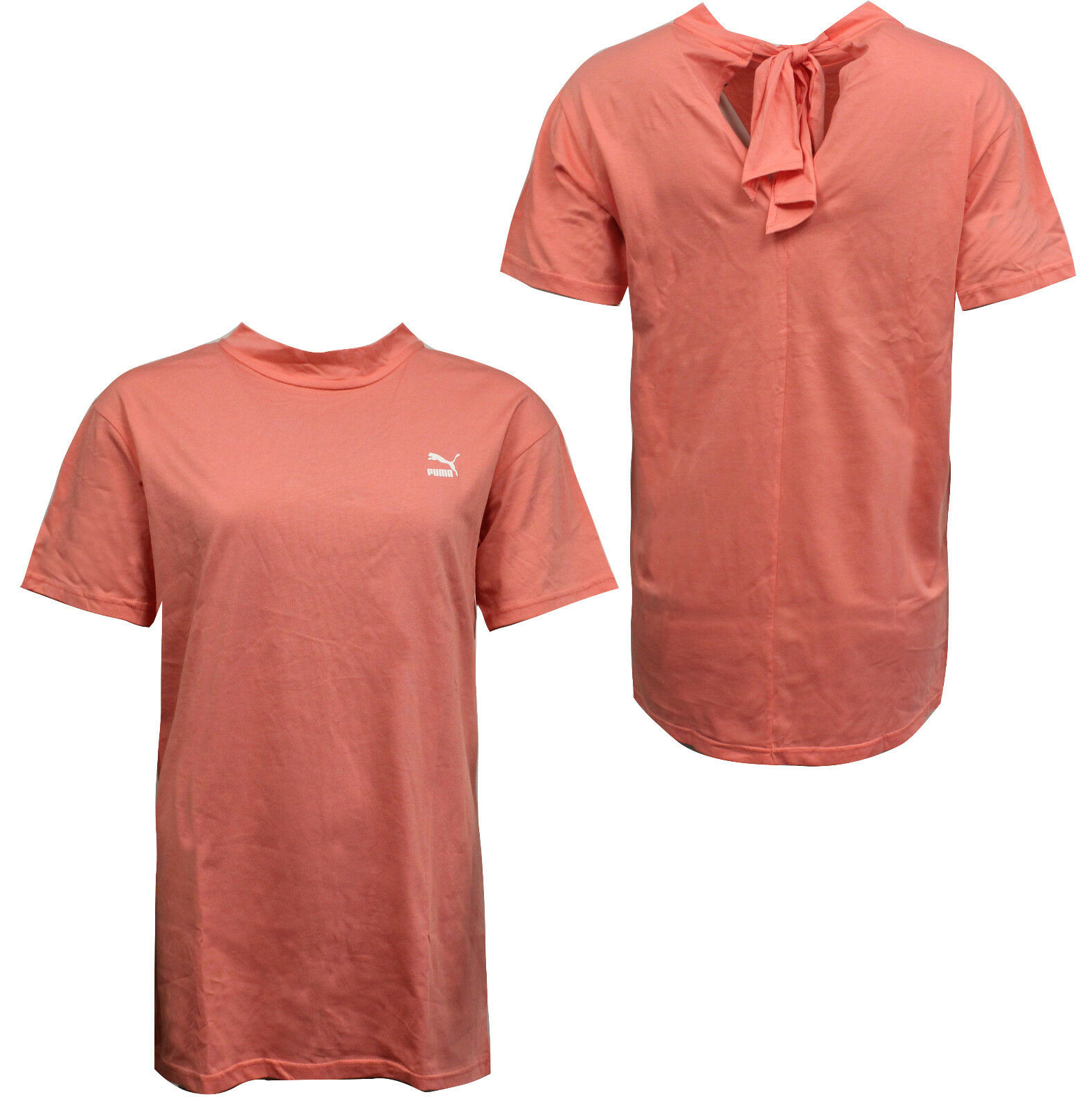 Puma Bow Elongated Womens T-Shirt Tee Short Sleeve Top Shell Pink 850236 11 A56E - Size X-Small