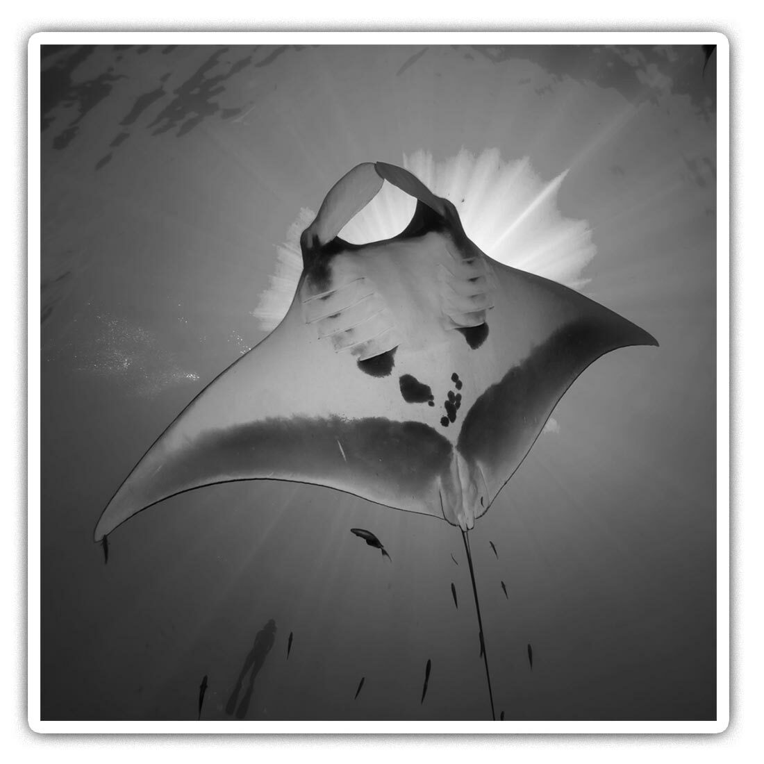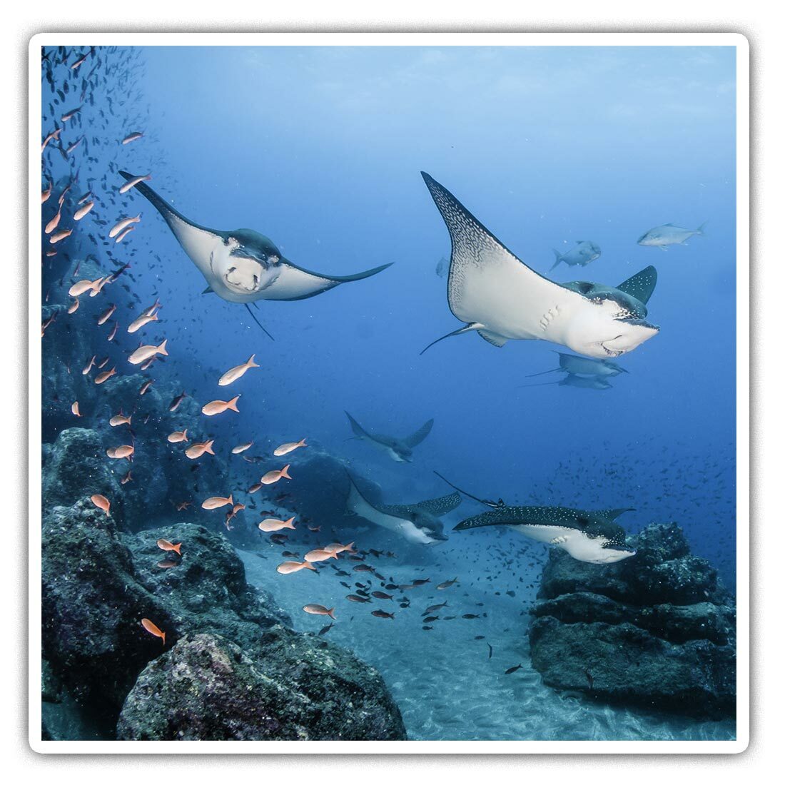 2 x Square Stickers 7.5 cm - Black Mantaray Underater Coral Reef Ray #44318