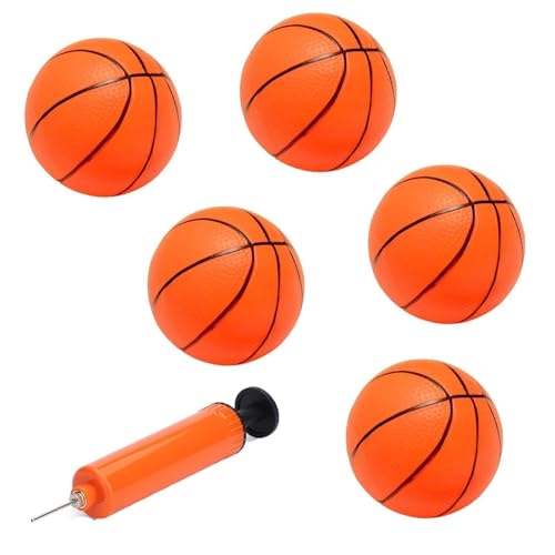 5Pcs Set Mini Basketball, Basketball, Small Basketball Set with Included Pump and Needle Basketball for Family Indoor and Outdoor Play Pool Parties (The Color of The Pump Is Random) (Orange News)