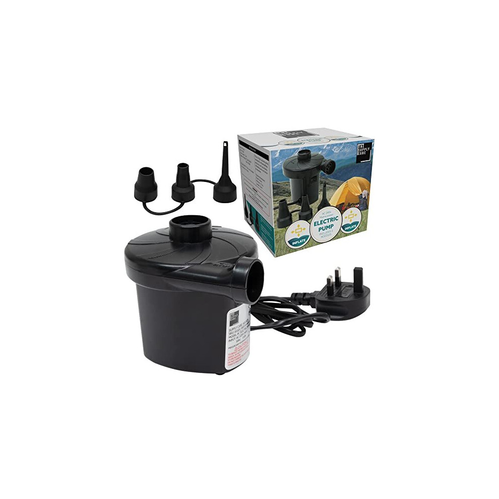 Supply Cube AC Electric Air pump with 3 Nozzles | AC 150w Air Pump | Portable Electric Pump | Quick-Fill Deflate & Inflate Pump for Paddling Pool, AirBed Pump, Swimming Pool Camping Accessories