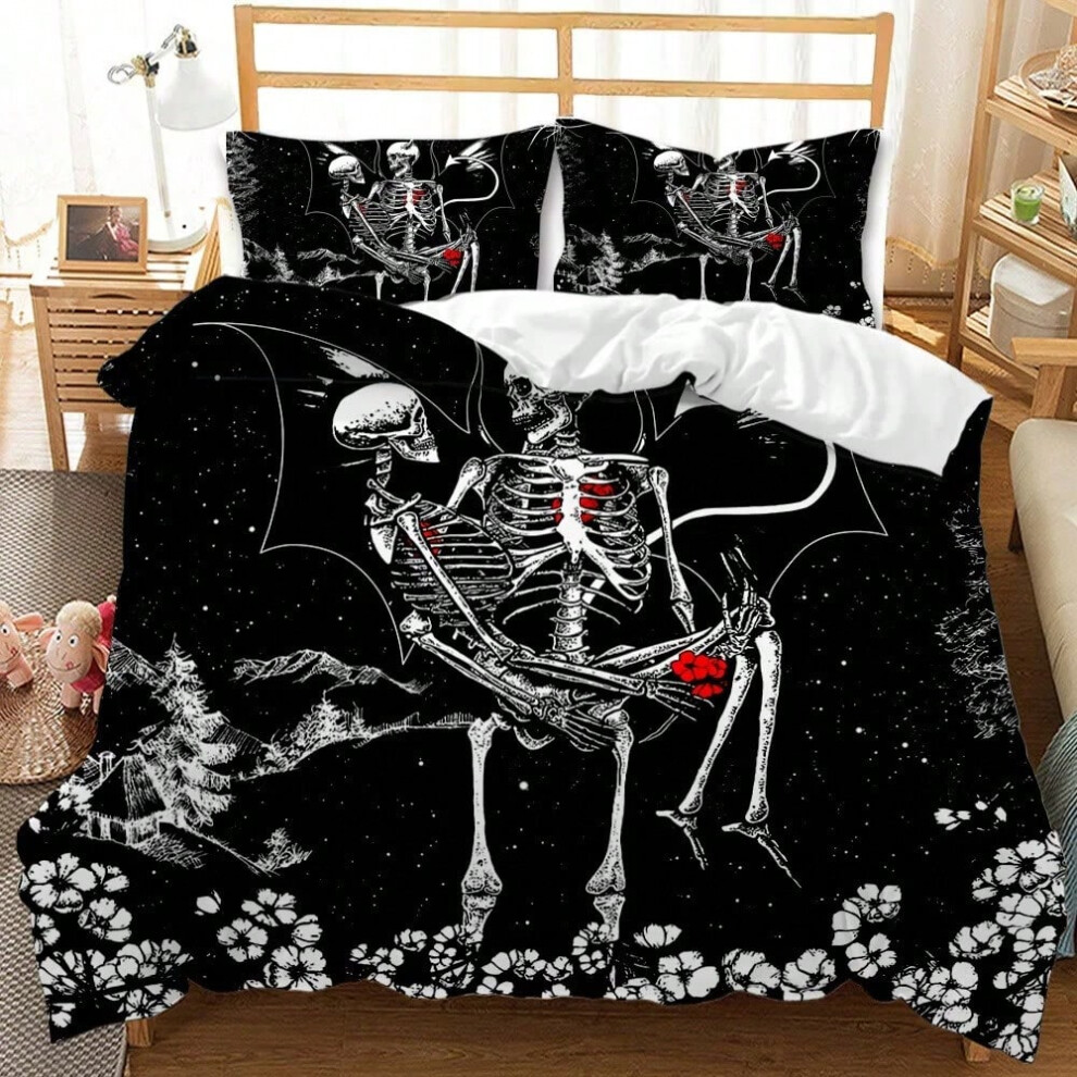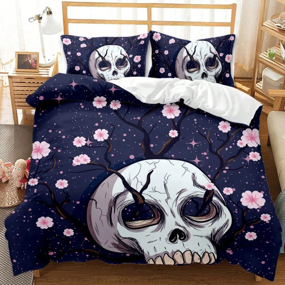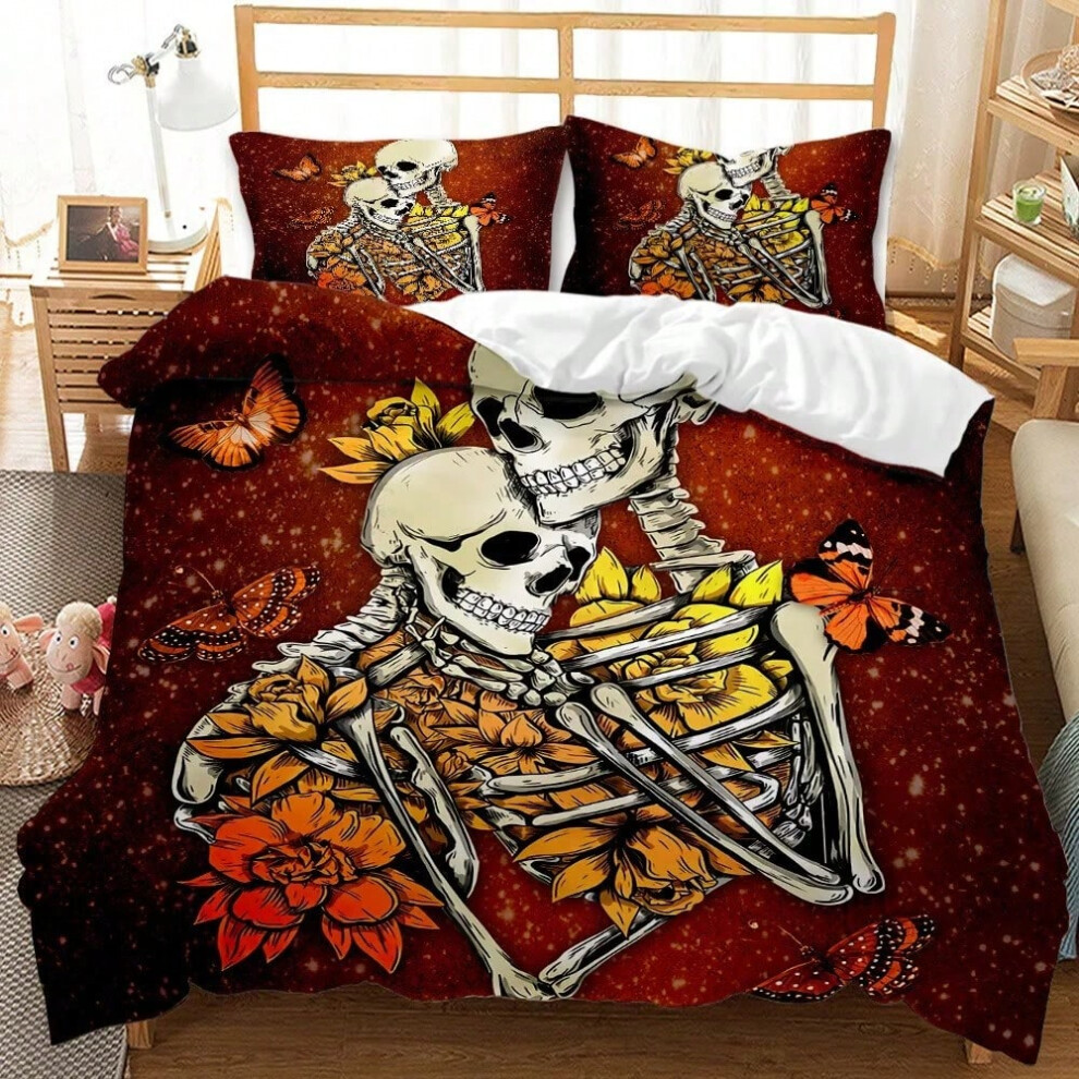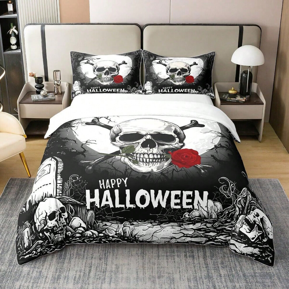 (2, 200*200 (three-piece set)) Halloween Skull Pumpkin Duvet Cover for Kids Adult Bedroom Decoration Gothic Skull Theme Quilt Cover