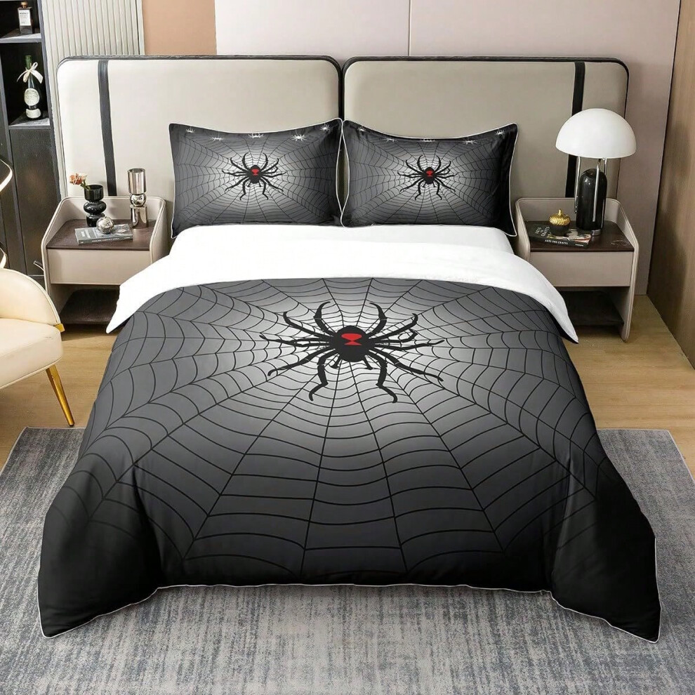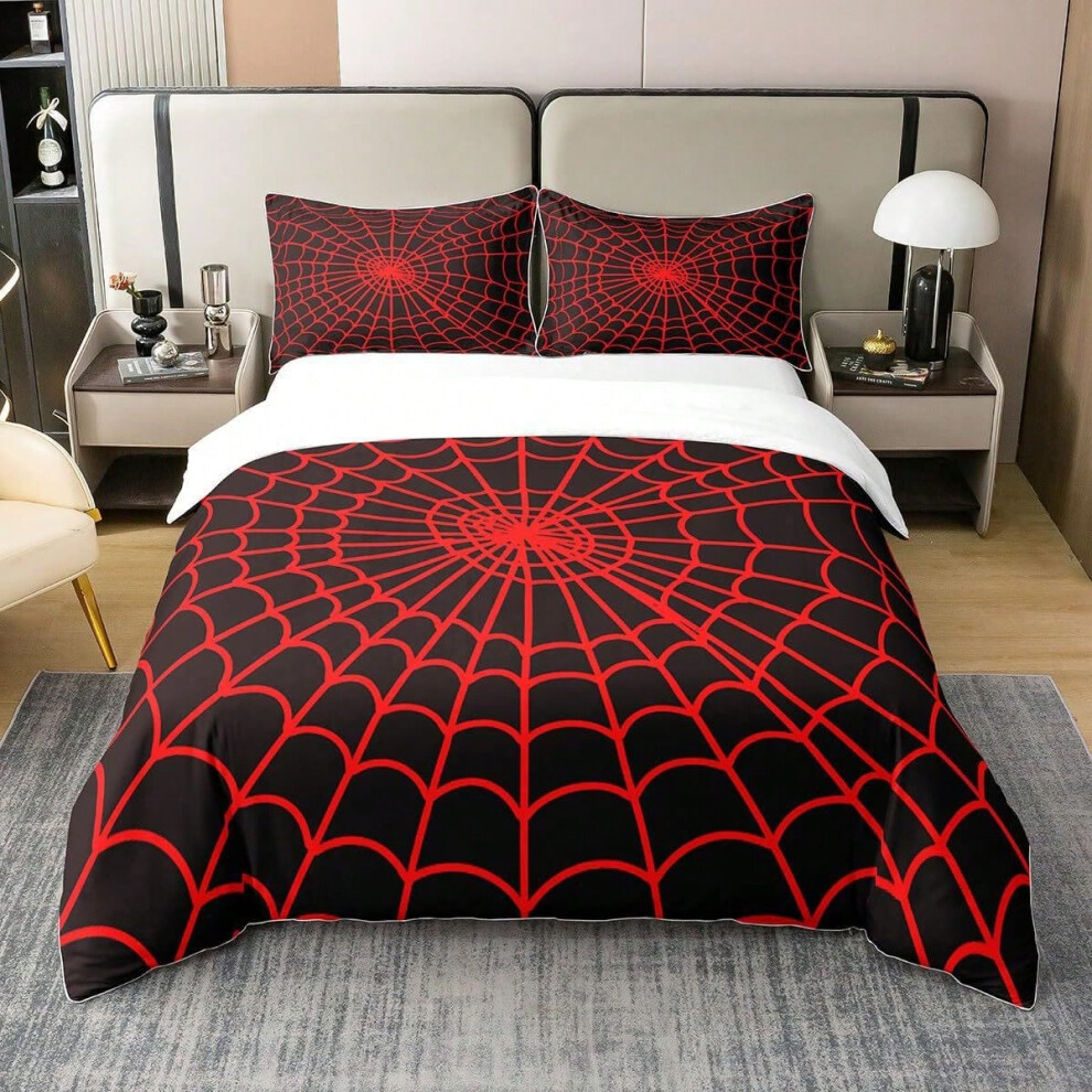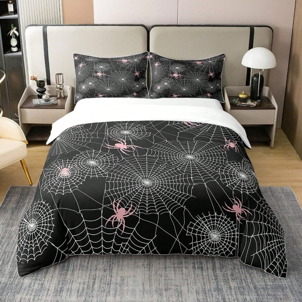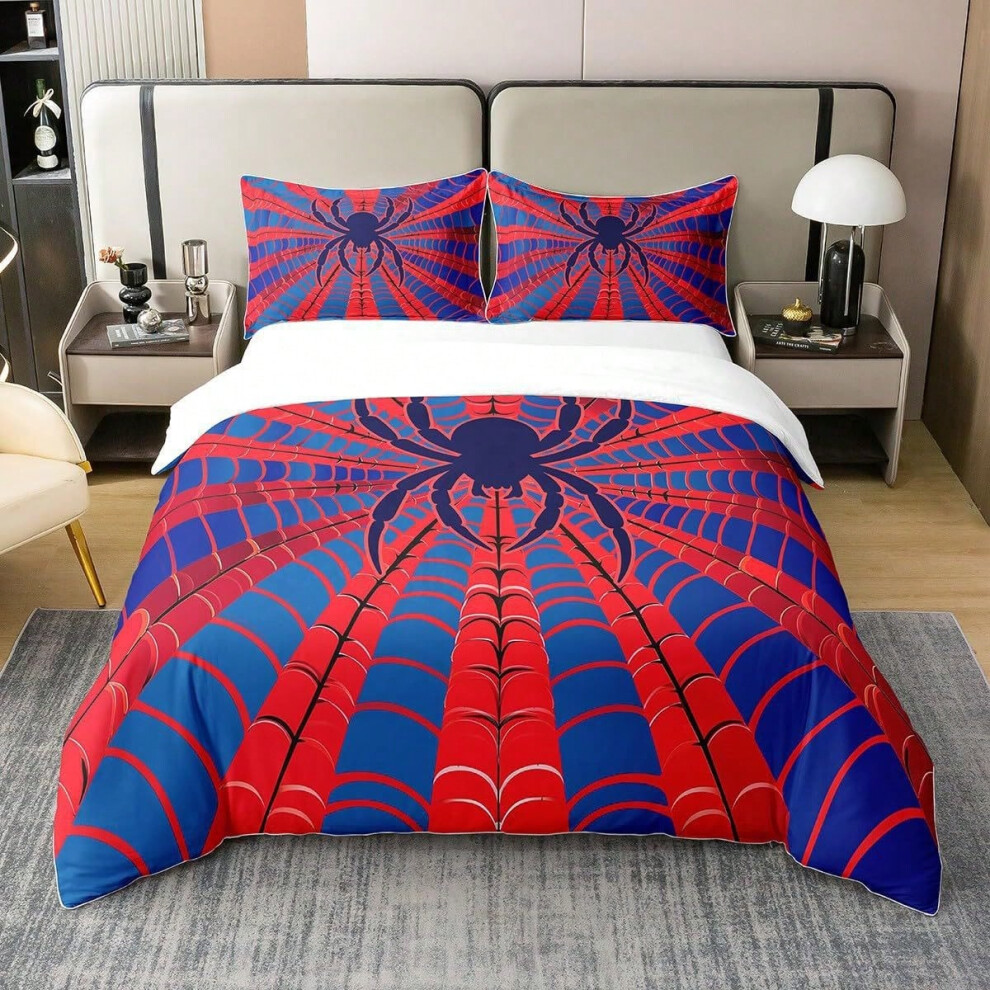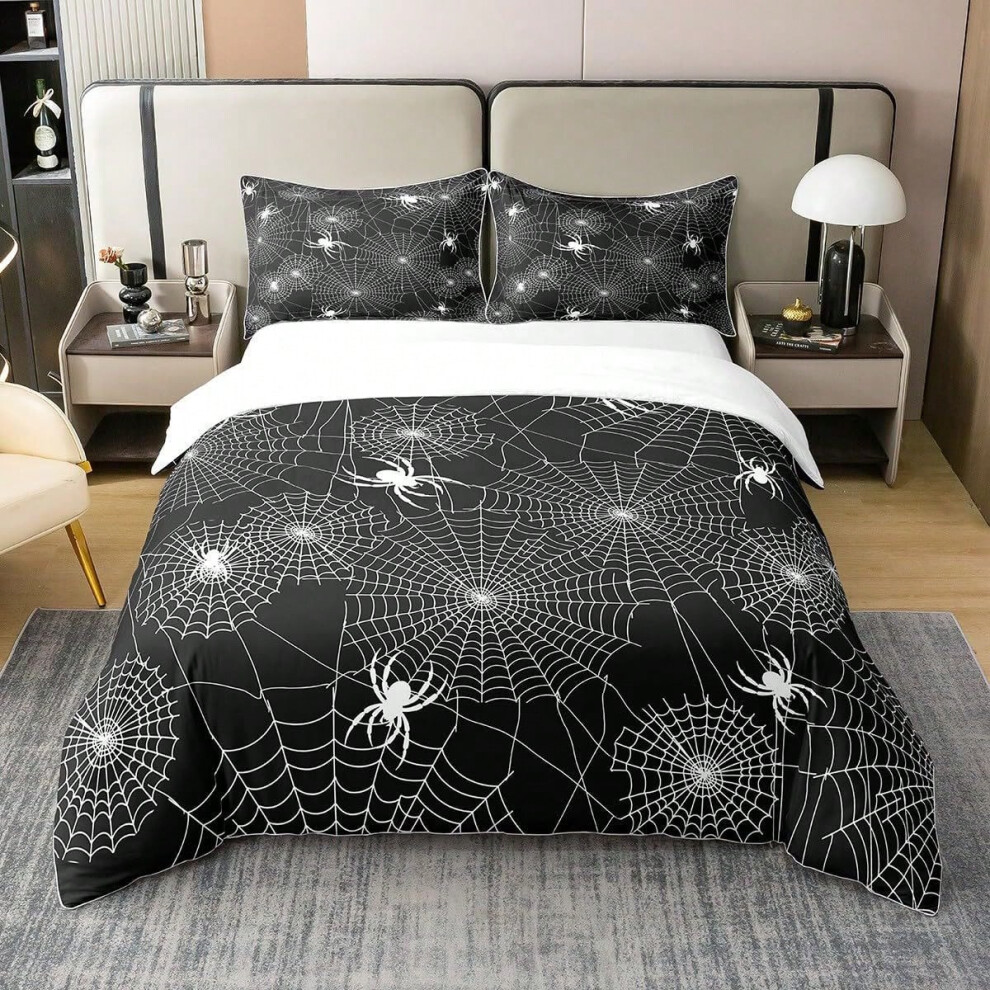 Halloween Bedding Set King Size,Kids Cartoon Spider Web Bat Pumpkin Lantern Duvet Cover Set