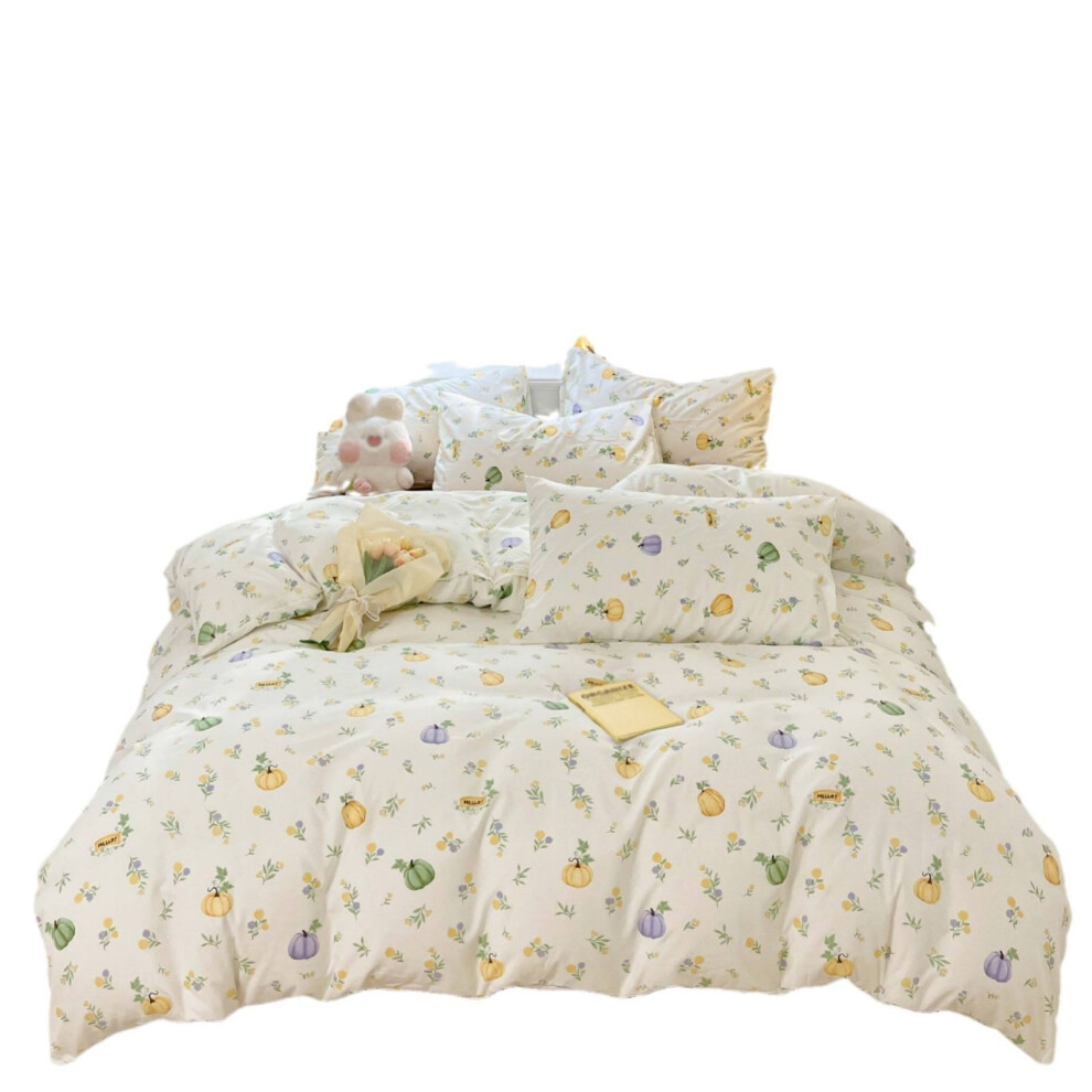 (200x200cm) Pumpkin Printed Duvet Cover Sets, Botanical Soft Bedding Sets with Zipper Closure and Corner Ties
