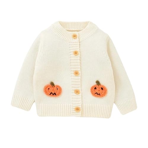 Jumper Boys, Girls Jumper Halloween Cardigan with 3D Pumpkin Design, Soft and Comfortable Outerwear for Babies and Toddlers for Autumn and Winter (Beige 12-18 Months)