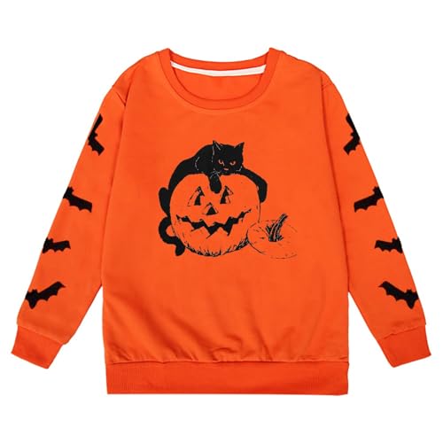 Jumper for Girls - Halloween Sweatshirts Cat Pumpkin Printed Long Sleeve Crewneck Pullover Tops Loose Fit Funny Holiday Sweatshirt (Orange 5-6Years)