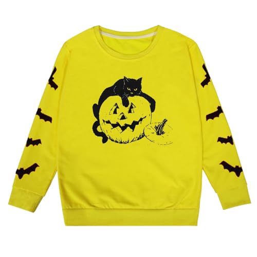 Jumper for Girls 12-13 - Halloween Sweatshirts Cat Pumpkin Printed Long Sleeve Crewneck Pullover Tops Loose Fit Funny Holiday Sweatshirt (Yellow 5-6Years)