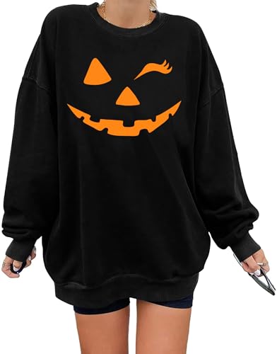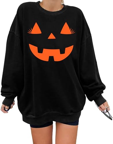 tiorhooe Halloween Jumper Women Smiling Pumpkin Sweatshirt Ladies Happy Halloween Tshirt