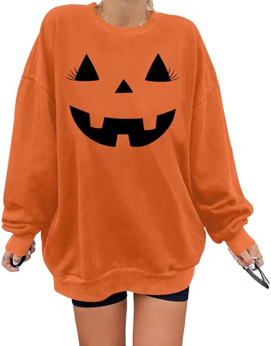 VVNTY Halloween Sweatshirt for Women Pumpkin Graphic Sweater Shirt Halloween Casual Jumper (Orange1,XL)