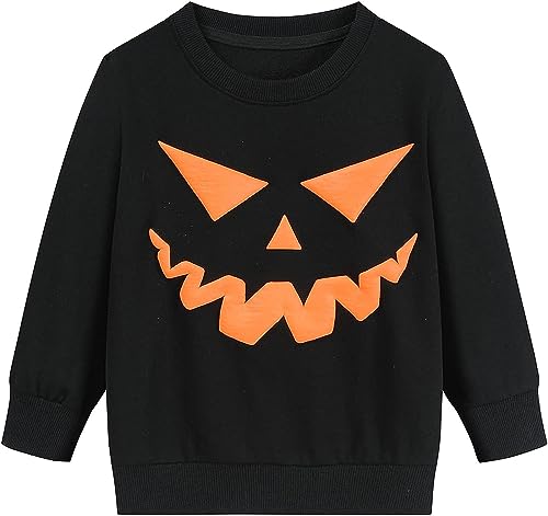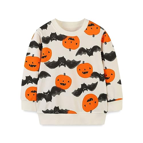 imKutie Kids Halloween Jumpers Toddler Boys Girls Sweatshirts Cartoon Pumpkin Bat Long Sleeve Pullover Jumper Shirt Tops for 1-7 Years