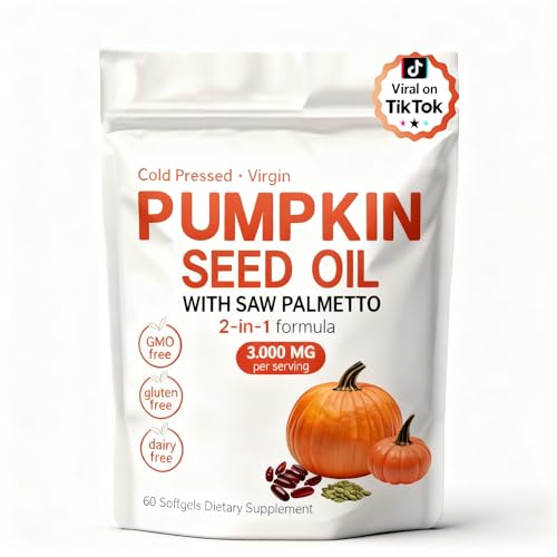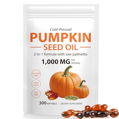 Premium Pumpkin Seed Oil, 3000mg Per Serving, 2 in 1 Cold Pressed Pumpkin Seed Oil for Hair, Urinary, Bladder & Prostate Health, Skin Care - Non-GMO, Gluten - Free 300 Softgels (1)