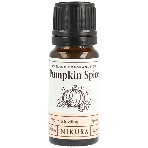 Nikura Pumpkin Spice Fragrance Oil - 10ml | Perfect for Soap Making, Candle Making, Wax Melts, Diffusers | Great for use in Bath Bombs, Perfume Oil, Potpourri | Vegan & UK Made