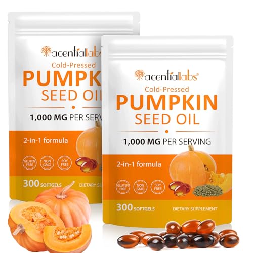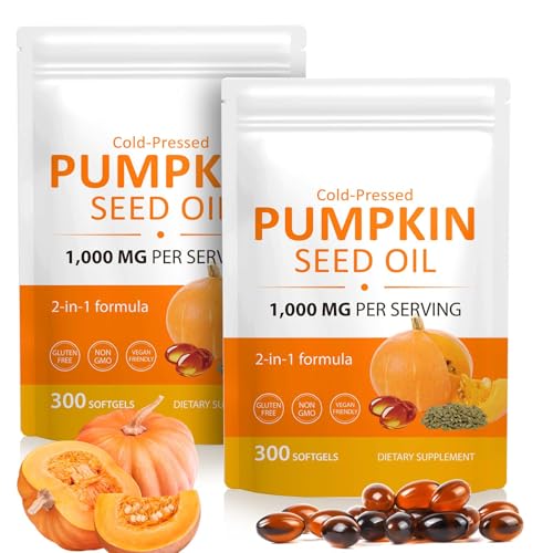 Pumpkin Seed Oil Capsules,100% Natural Cold Pressed,1000MG Pumpkins Seed Oil Organic,Cold Pressed,2 in 1 Pumpkins Seeds Oils for Hair Growth,Non-GMO,Gluten Free,300 Softgels