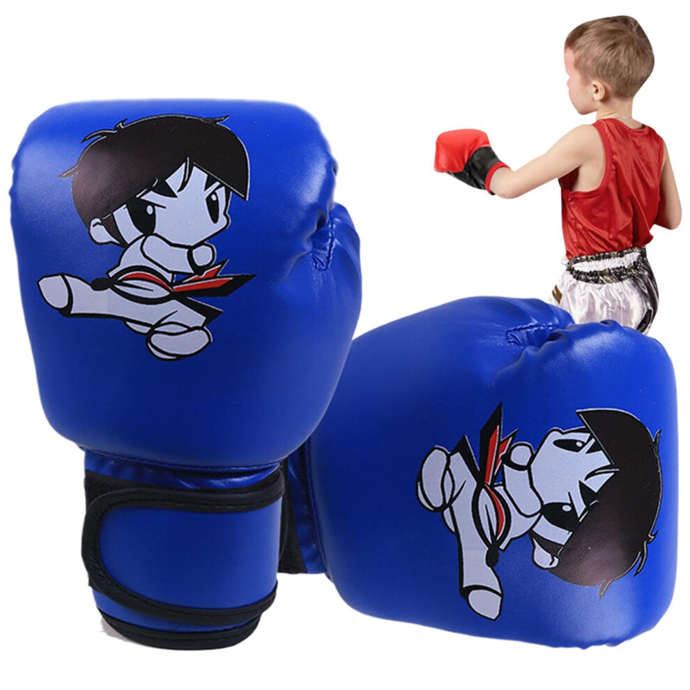 Children's Muay Thai Gloves Blue PU Leather Punch Bag Gloves Cartoon Pattern For Home Training And Sparring Kids Kickboxing