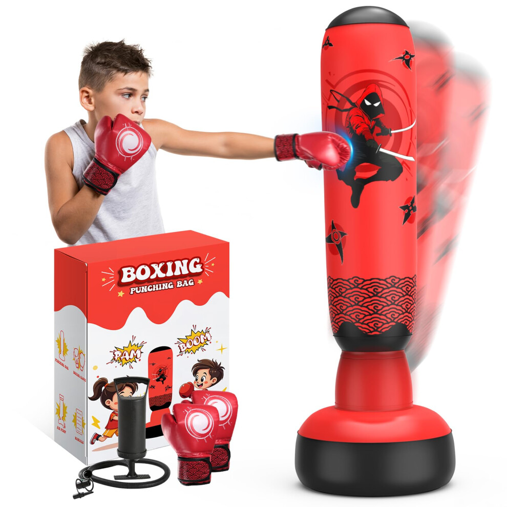 Kids Punch Boxing Punching Bag: 63" inflatable boxing punch bag set kit free standing for childrens kids age 3-14,blow stand up punchbag as Toy for Boys,fun for Karate/Taekwondo kick
