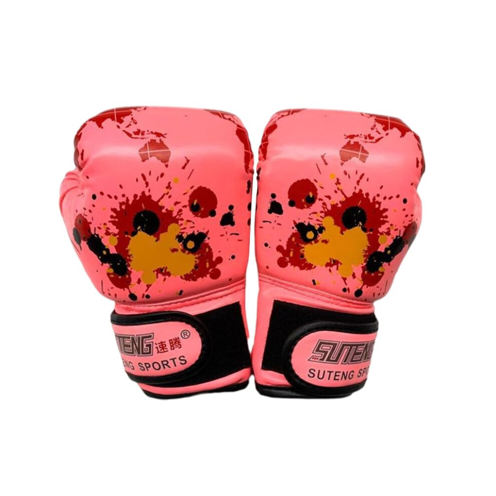 Children's Boxing Gloves PU Leather Sparring Gloves for Kids, Pink, Punch Bag Training, Size Adjustable, Durable Material