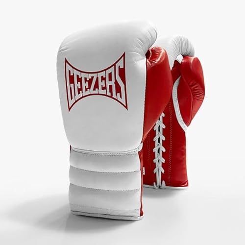 Geezers Boxing Hammer Training/Sparring Boxing Gloves 2.0, Laced Gloves, Mens Womens Boxing Lace up Gloves, Ideal for Punch Bag, Sparring Training and Mitts Pads Workout. (12oz, White/Red)