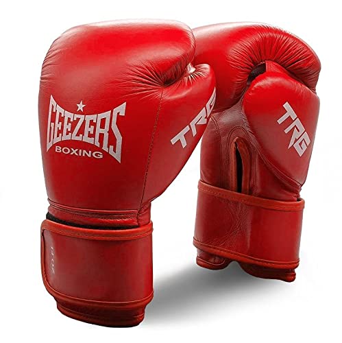 Geezers Boxing, Premium Leather TRG Training/Sparring Boxing Gloves, Hook and Loop gloves, Mens Womens Boxing gloves, ideal for punch bag, sparring and mitts pads training (16oz, Red)