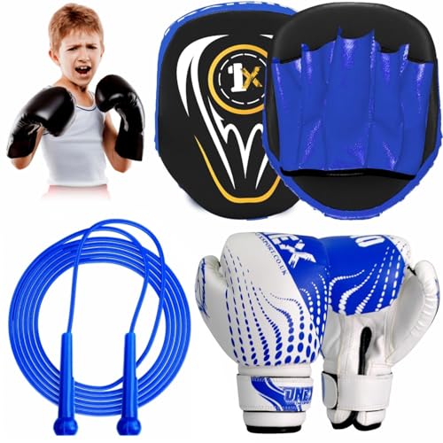 ONEX Boxing Gloves and Focus Pads Set for boys and girls Kids Twins Kickboxing Punching Professional Training - Hook and Jab MMA Punch Thai Strike Bag