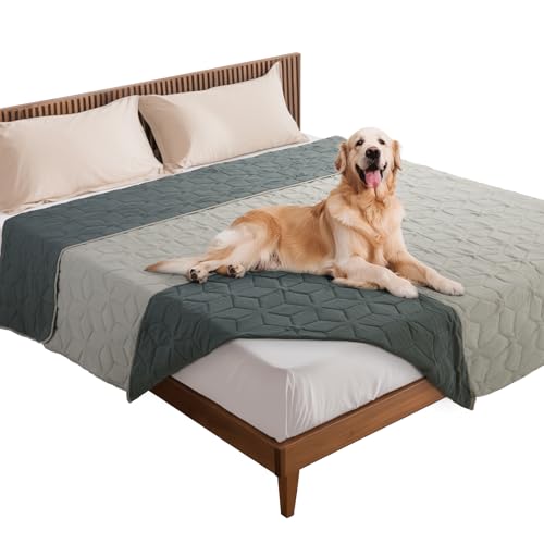 PICK FOR LIFE Waterproof Dog Blanket For Bed, 97×190cm Dog Blankets Washable Soft Reversible Puppy Blankets Anti Scratches Dirty for Bed Sofa Furniture (Light/Dark Grey)