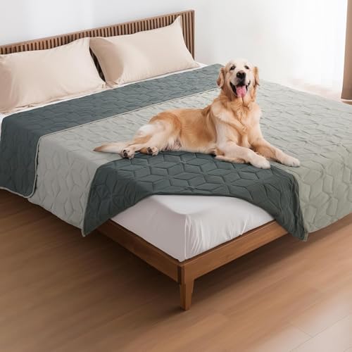 PICK FOR LIFE Waterproof Dog Blanket for Bed, Washable Pet Blankets for Dogs Cats, 137x208cm Reversible Puppy Throw Blankets Anti Scratches Dirty for Bed Sofa Couch Cover Furniture(Light/Dark Grey)