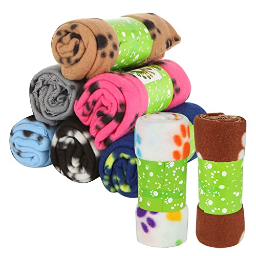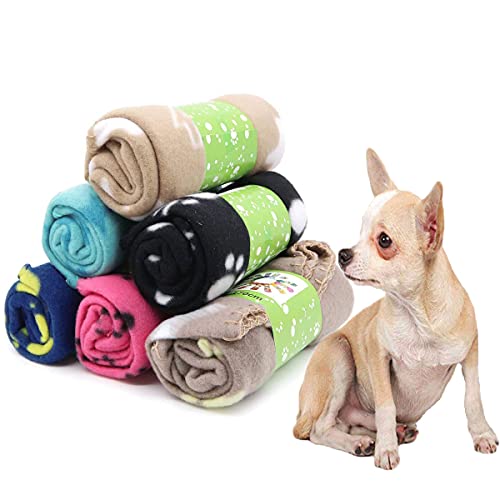 BVAGSS 6 Pack Small Dog Blanket, Super Soft Warm Pet Cover Blankets, Paw Print Puppy Fleece Flannel Blanket for Small Medium Dogs and Cats XH075 (60 x 40 cm, Multicolored)