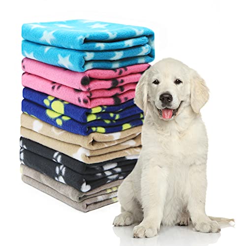 Geluode Pack of 6 Dog Blankets Soft Fleece Puppy Blankets Washable Sleep Mat Pad Bed Cover With Paw Print For Pets Cats Kitten Guinea Pig Anaimals(60 x 70cm/23.6 x 27.6 inch, Multicolor)