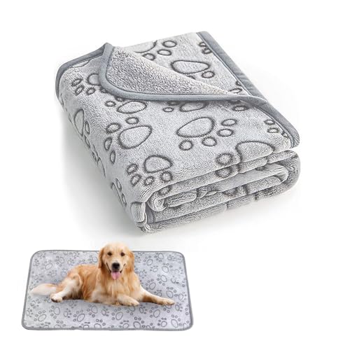 GAOCUNBING Reversible Sherpa Fleece Blanket, Waterproof and Stain Blanket, Dog Blankets Washable Soft Puppy Blankets, Warm Cosy for Bed Mattress, Sofa Gray,71X100cm
