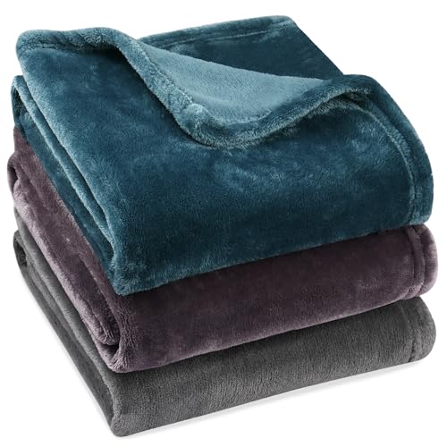 Onarway Dog Blanket for Pet Washable: Fluffy Soft Medium Throw for Cat Puppy Kitten Dogs - 3packs 70x100cm Pet Blankets for Sofa Bed Car Indoor Grey Purple Lake Green
