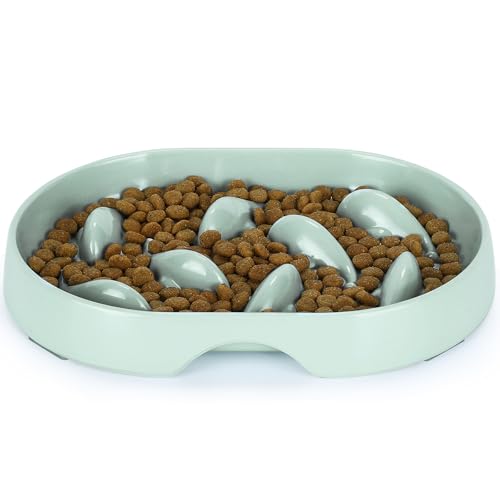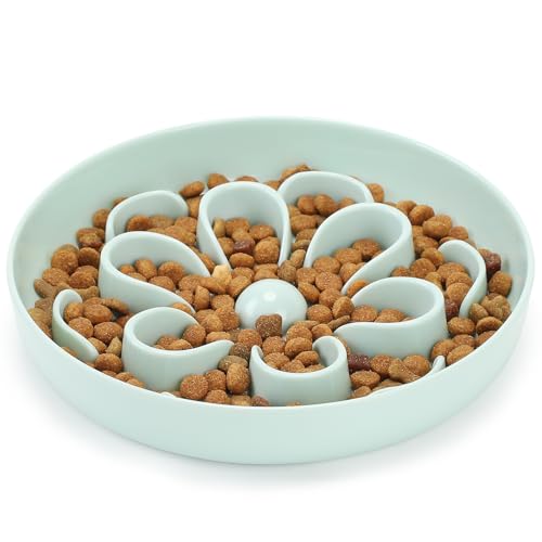 IDOGCHEW Cat Bowl Slow Feeder Anti-Gulping Anti Vomiting, Cat Puzzle Feeder for Wet Food Dry Food Slow Down Pet Eating Healthy Diet Feeding, Spill Proof Pet Bowls Non-Slip Bottom for Cat Kitty Puppy