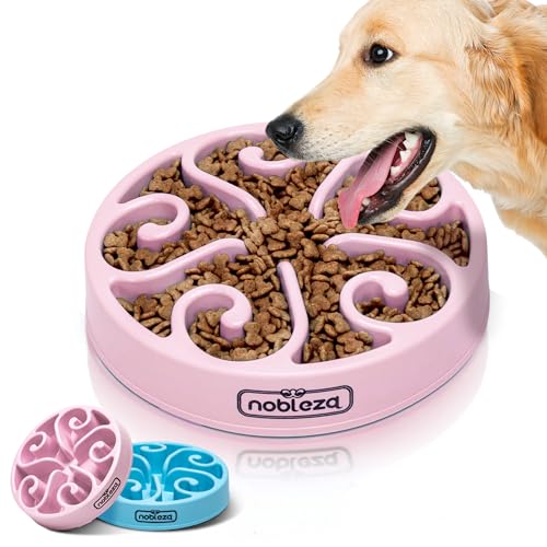 Nobleza 1 Pack Slow Feeder Dog Bowl Large, 20.4cm/8.03in Dogs Food Bowl, Pet Bowls to Slow Down Eating, Pet Puppy Dog and Cat Anti-Gulp Slow Feeding Bowls, Pink