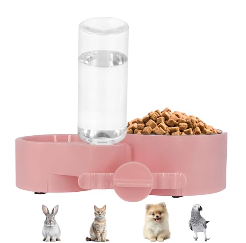 Dog Bowls with Water Dispenser for Puppy,Crate Water Bowl for Cat,Dog Cage Hanging & Standing Bowls Removable Cage Water Bowls for Small Dogs,Cat,Rabbit,Piggy, Parrot, Guinea Pig (Pink)