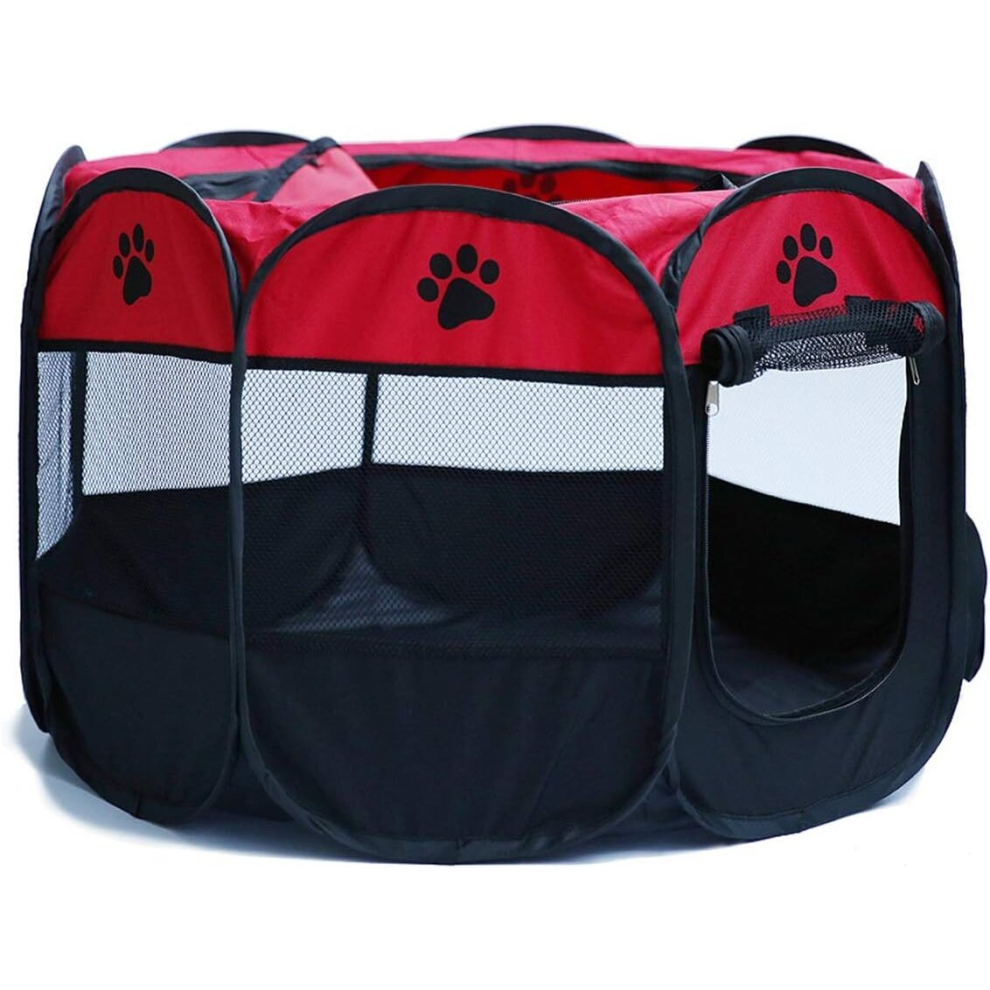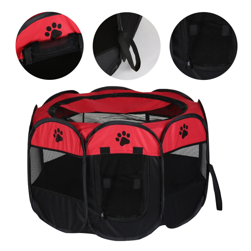 Portable Foldable Pet Playpen, Foldable Washable Pet Tent Dog House Puppy Cat Cage Kennel Octagonal Fence Outdoor Home Supplies (Color : Red)