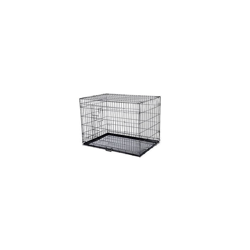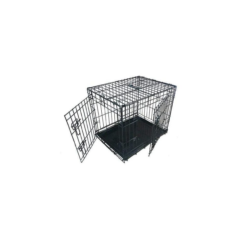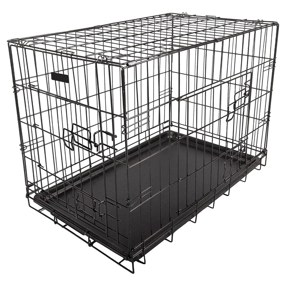 Dog Puppy Cage Folding 2 Door Crate with Plastic Tray Medium 30-inch Black (Bed Included)