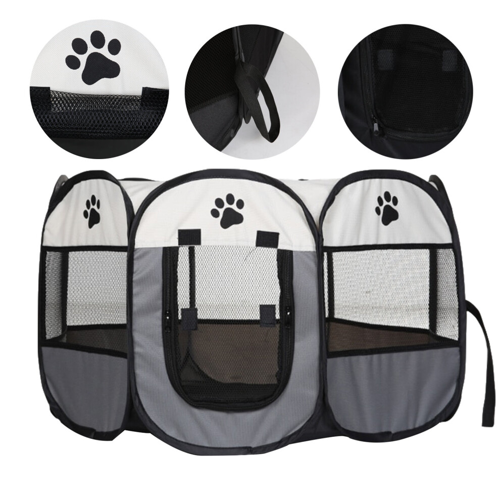 Foldable Pet Playpen Dog Cat Playpen Soft Fabric Portable Foldable Puppy Run Cage Pet Kennel Indoor Outdoor Use Grey 29"x29"x16"