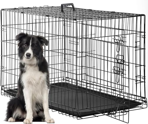 Cardys Dog Crate Large Dog Cage Puppy Pet Cage with 2 Doors Easy Clean Removable Plastic Tray Folding Metal Training Dog Crate Large Size 36 inch (36")