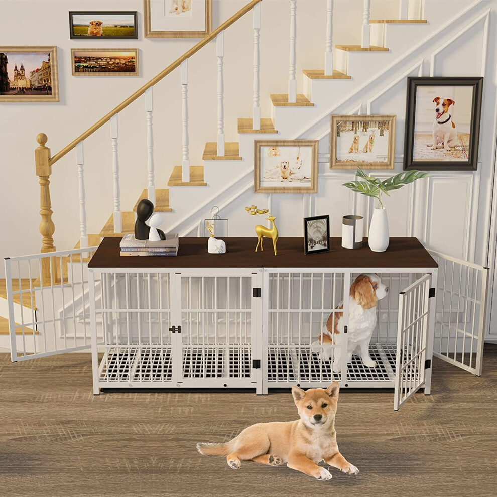 (White, Extra Large 107 x 71 x 81cm) Heavy Duty Dog Kennel Wooden Dog Crate Puppy Cage End Table