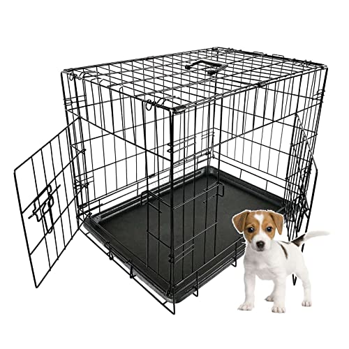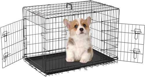 Cardys Small Dog Crate Dog Cage Puppy and Cat Crate Pet Cage with 2 Doors Easy Clean Removable Plastic Tray Folding Metal Training Crate for Small Dogs 24 inch (24")