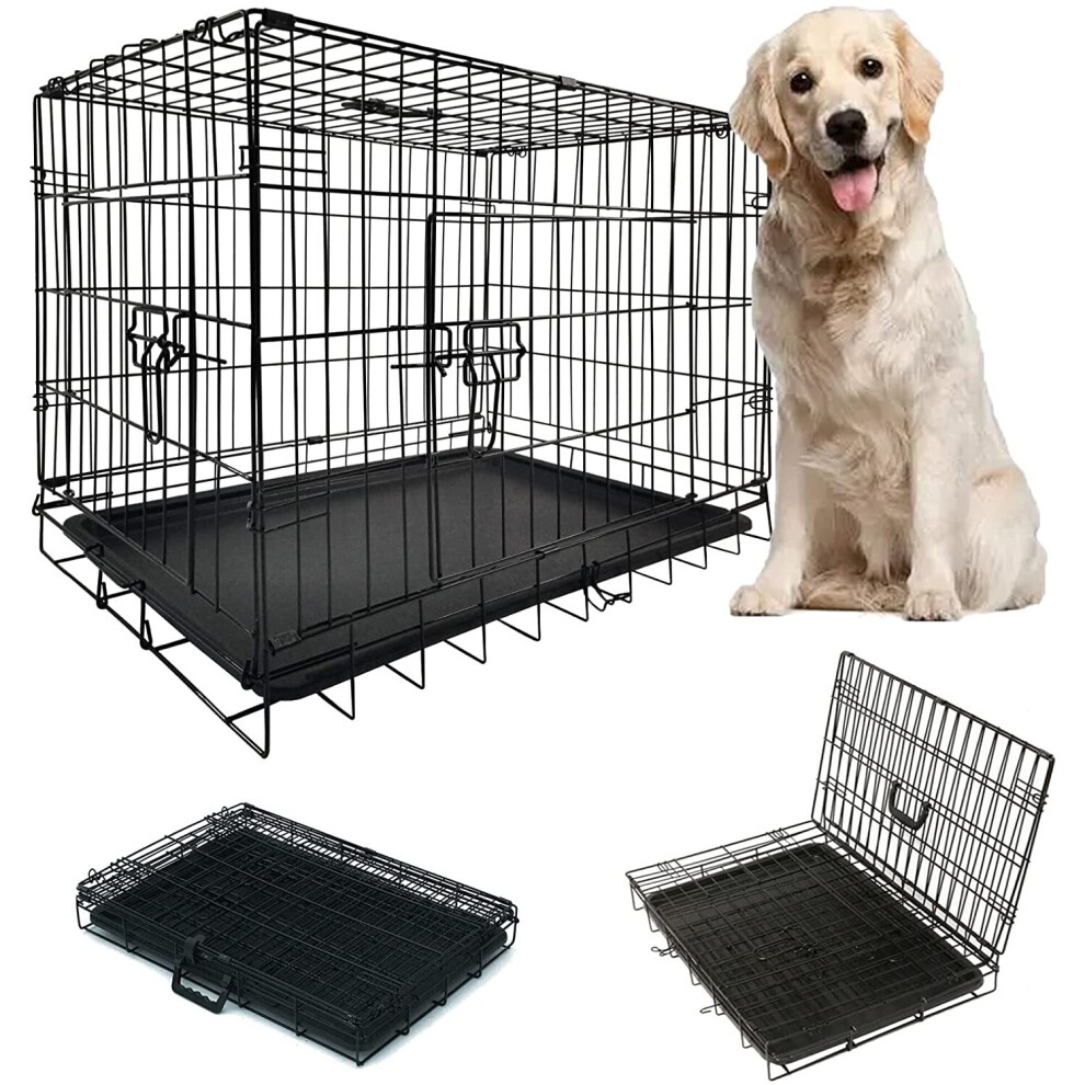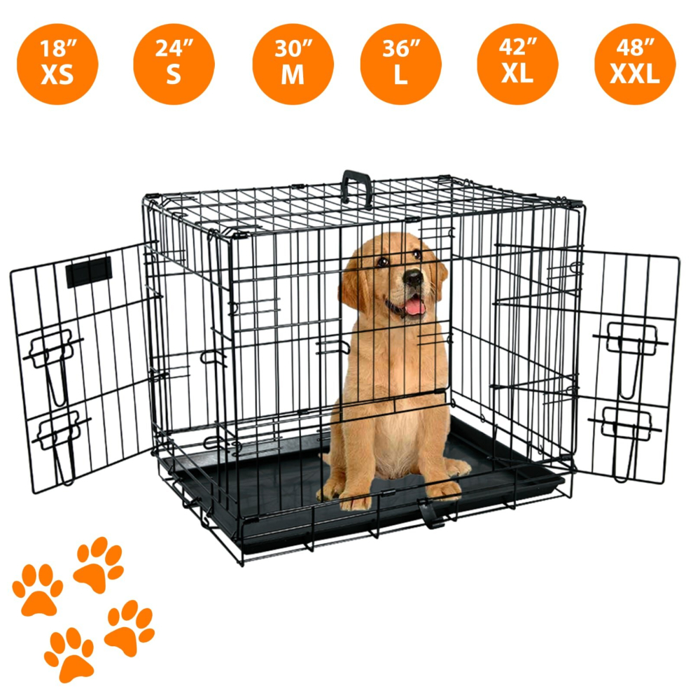 (36 Inch) PET CRATE Folding Strong Metal Double Door Puppy Dog Cage with Animal Floor Tray