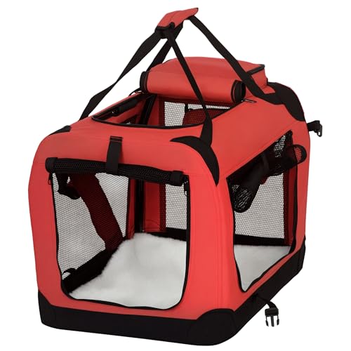 PawHut Folding Fabric Soft Portable Pet Dog Cat Crate Puppy Kennel Cage Carrier House Medium 23" Red New
