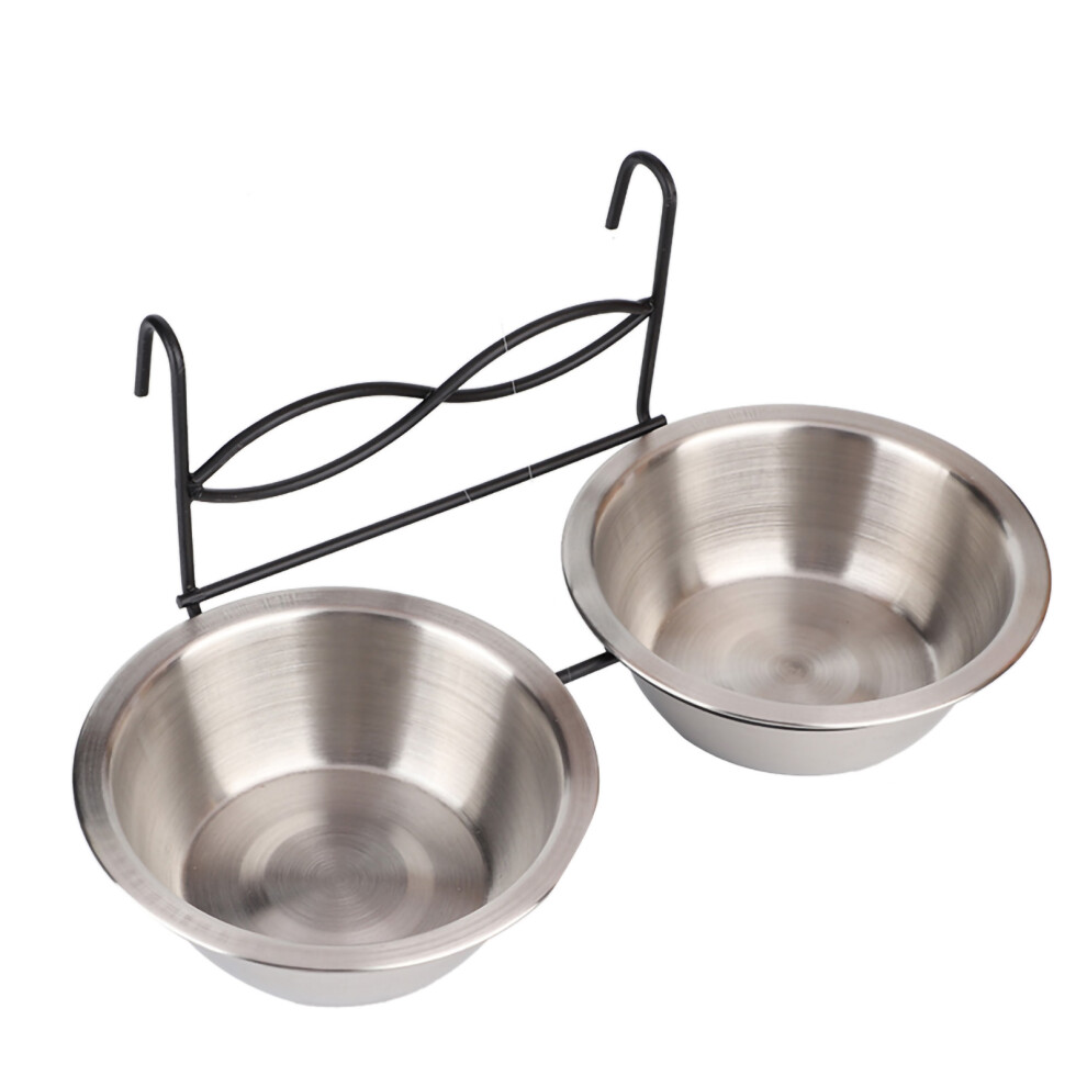 Stainless Steel Dual Hanging Food Water Bowl Feeder with Hook for Cat Pet Dog Puppy Crate Cage