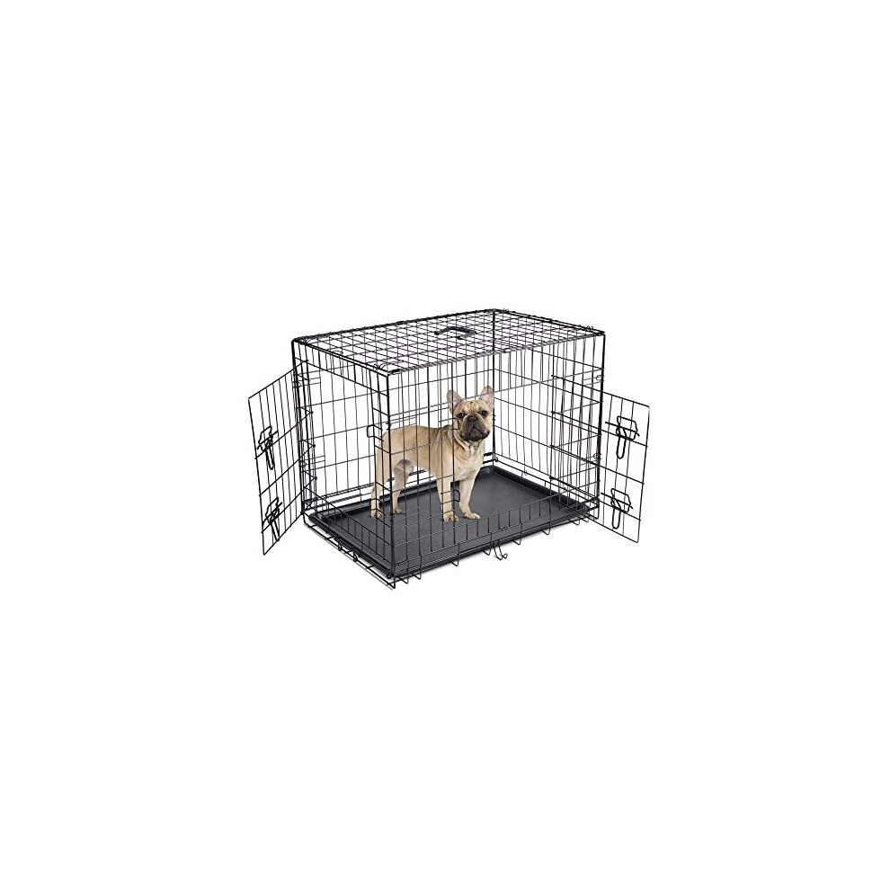 Cardys Small Dog Crate | Puppy Cage and Cat Crate | 2 Doors Easy for Dual Access | Easy Clean Removable Plastic Tray | Strong Folding Metal Training & Travel Crate for Small Dogs 24 inch (24")