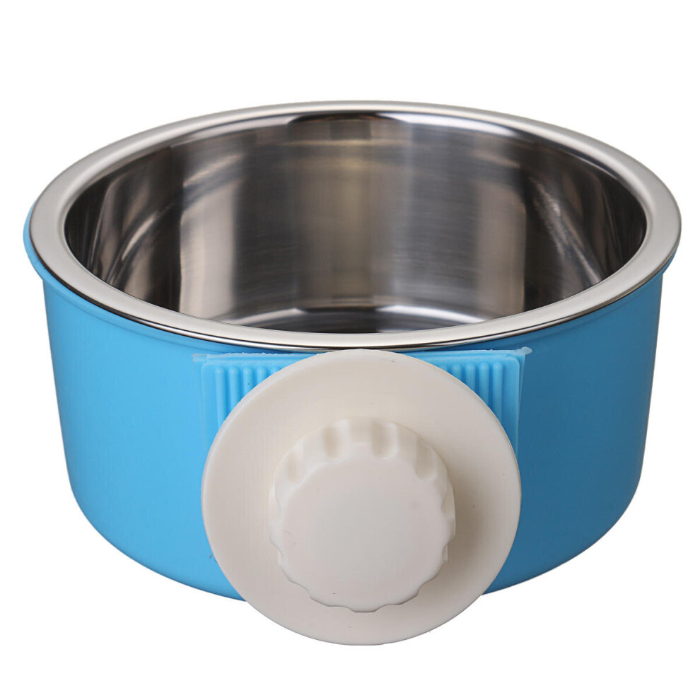 (Blue, L) Stainless Steel Dog Cat Bird Puppy Pet Hanging Cage Bowl Feeding Water Food