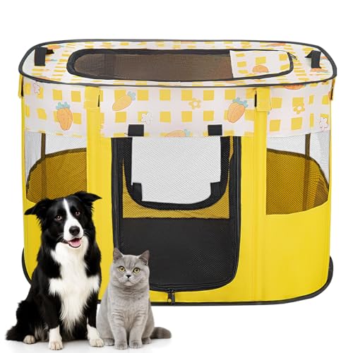 Foldable Pet Playpen, Portable Small Dog Cat Crate, Soft Indoor Outdoor Pet Cage, Puppy Playpen with Mesh Panels, Dog Tent, Cat Playpen, Travel Pet Puppy Cage for Pets (Yellow-L)